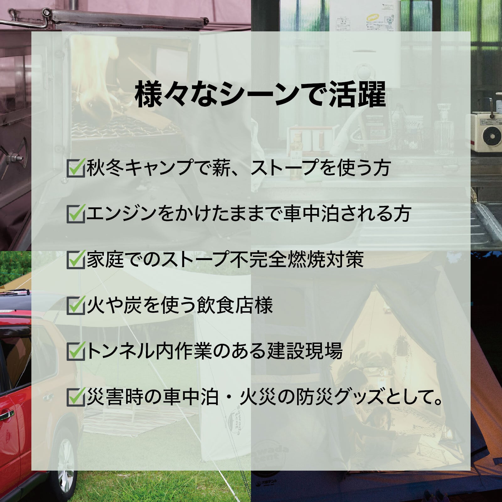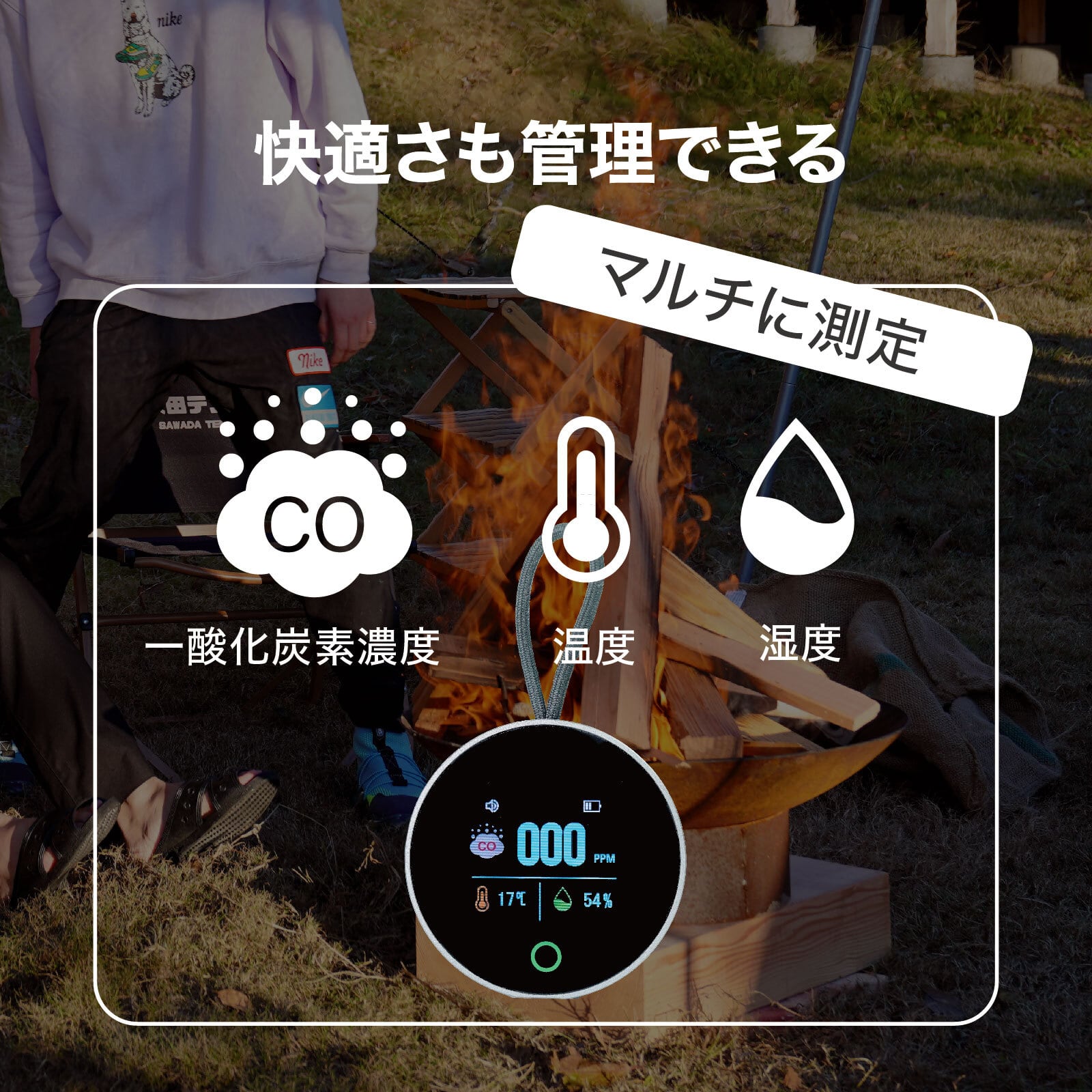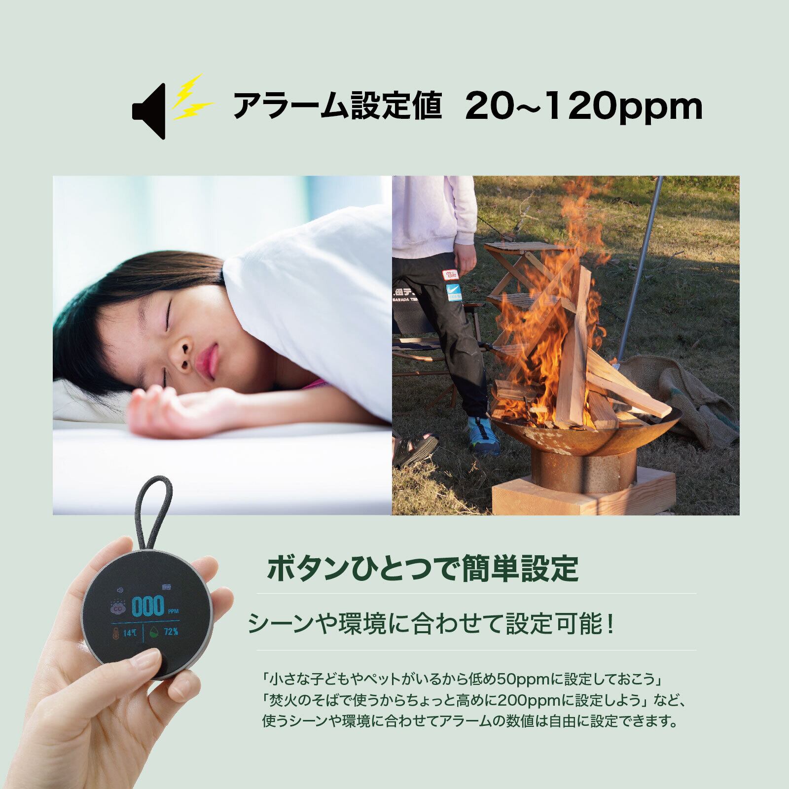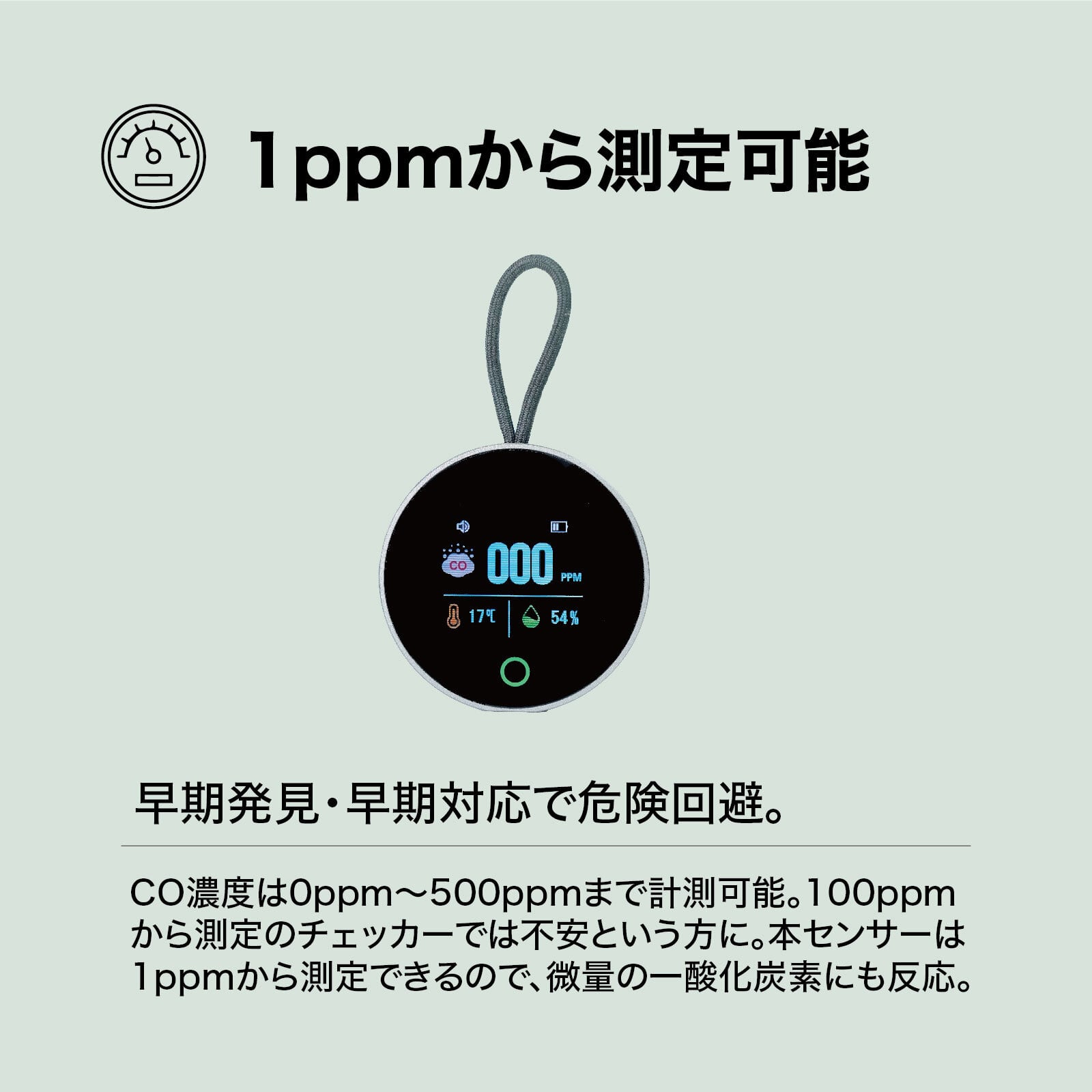 200ppmで症状が出ると言われている一酸化炭素ですが、人によっては100ppmで頭痛などの初期症状が出るなど、体調や個人差によってさまざま。本製品は0ppmから測定できるので安心です。