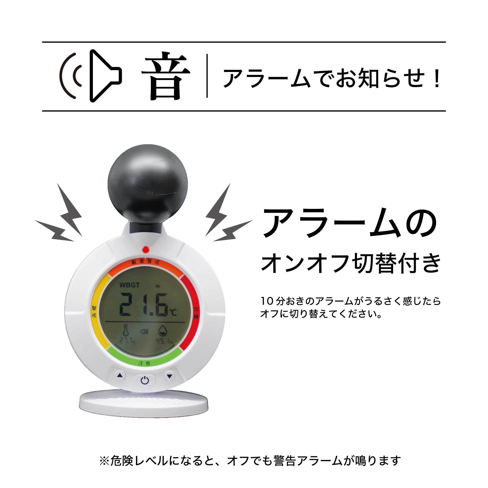 【液晶保護シールなし】熱中症計 黒球式 屋外 屋内 置き型 持ち運び 熱中症 予防 対策 暑さ指数 指数計 測定 計測 黒球式熱中症指数計 WGBT JIS B7922 準拠品 警告 アラーム 音 光 大画面 卓上 ぶらさげ マグネット カラビナ 義務化